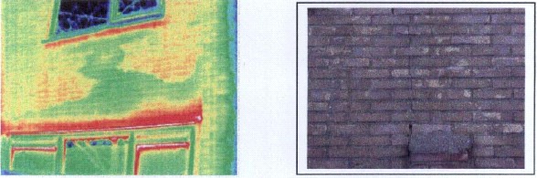 圖3、墻體裂縫紅外熱像圖。*右邊的為中間建筑物的可見光圖像。